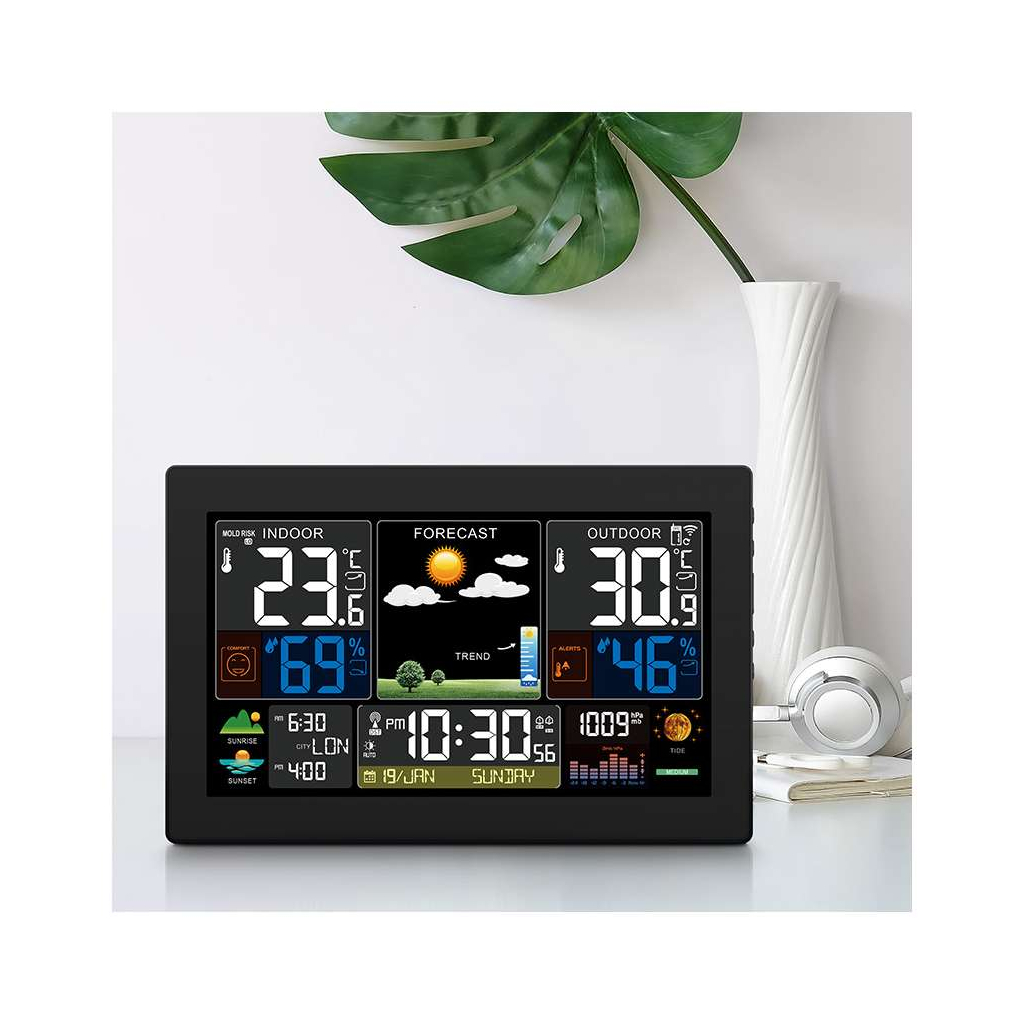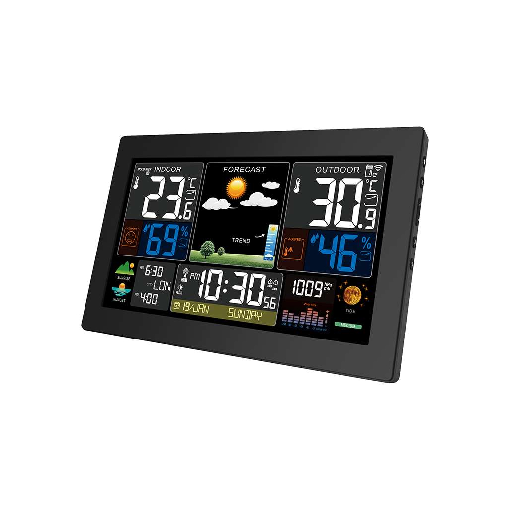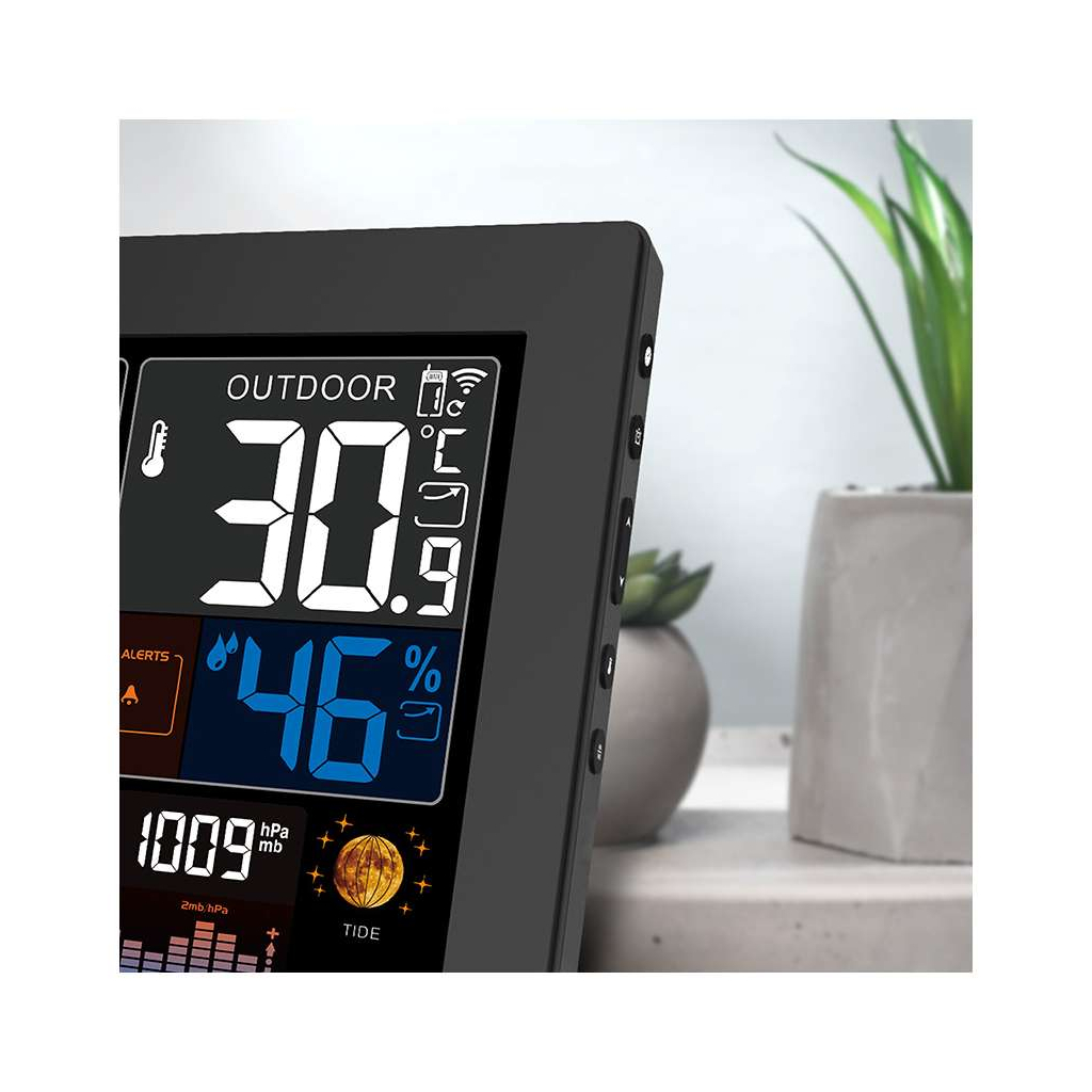 Acest model oferă o experiență intuitivă și confortabilă, ideală pentru uz casnic sau profesional. Beneficiați de o vizualizare clară a datelor meteorologice critice și de un control simplu, care face din această stație meteo un ajutor de încredere în planificarea activităților zilnice.