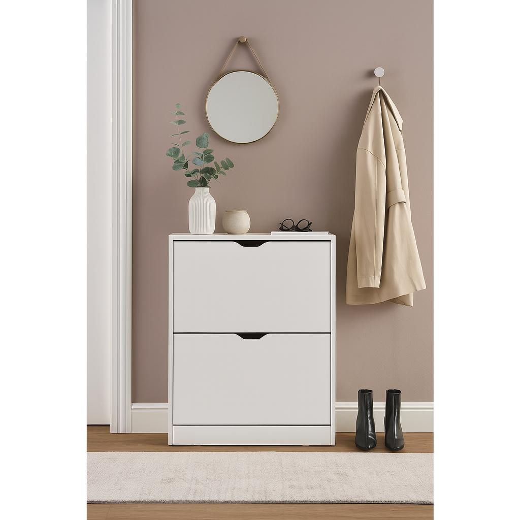 Structura robustă, realizată din lemn, asigură durabilitate și stabilitate pentru utilizarea zilnică. Cele două compartimente cu deschidere facilă permit depozitarea pantofilor în mod organizat, iar sistemul simplu de deschidere fără mânere contribuie la un aspect modern și aerisit.
