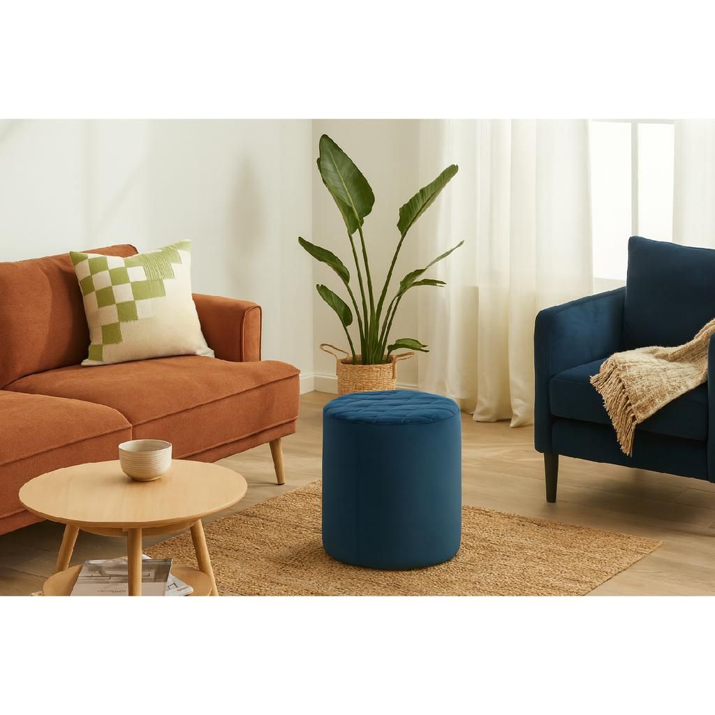 Acest taburet beneficiază de o tapițerie din stofă, ce oferă o senzație plăcută la atingere și un design sofisticat. Este perfect pentru utilizare atât ca scaun suplimentar, cât și ca sprijin confortabil pentru picioare sau chiar ca obiect decorativ, accentuând stilul camerei tale.
